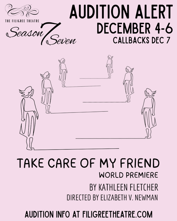 TAKE CARE OF MY FRIEND by Kathleen Fletcher, a world premiere, centers around a young woman whose is bravely navigating the challenges of her physical, mental and emotional health.