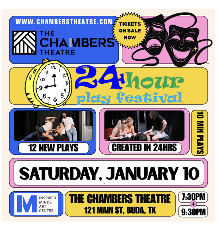 The Chambers Theatre Company presents 12 brand-new 10-minute plays — written, rehearsed, and performed in just 24 hours. Sometimes genius. Always whacky. Never repeated. |