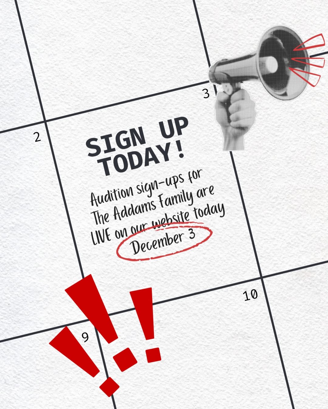 Magnolia Musical Theatre is thrilled to announce auditions for The Addams Family Musical! We are seeking dynamic, expressive performers with strong acting, vocal, and movement abilities to bring this delightfully spooky family to life. All roles are open.