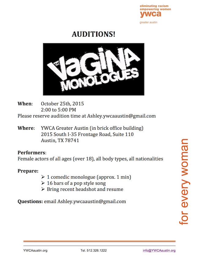 Bring recent headshot and resume Questions: email Ashley.ywcaaustin@gmail.com