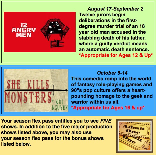 (Approximately a 20% savings over box office prices if used for our major productions)