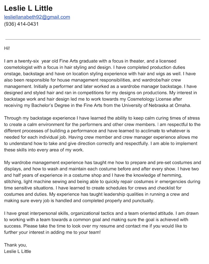 Tech Crew Member/Hair Stylist/Wig-Wrangler/Cosmetologist Relocating to Austin Seeks Links to Theatre Companies