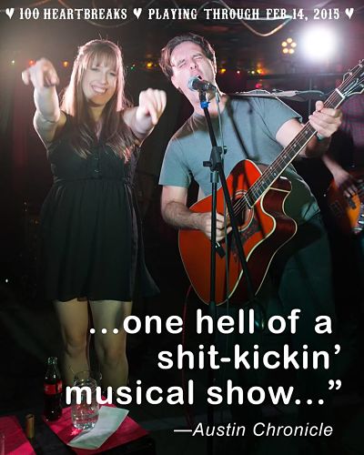 An aspiring singer tries to get her heart broken 100 times to be sad enough to write country music. Part theater, part musical, part barroom honky tonk country show.