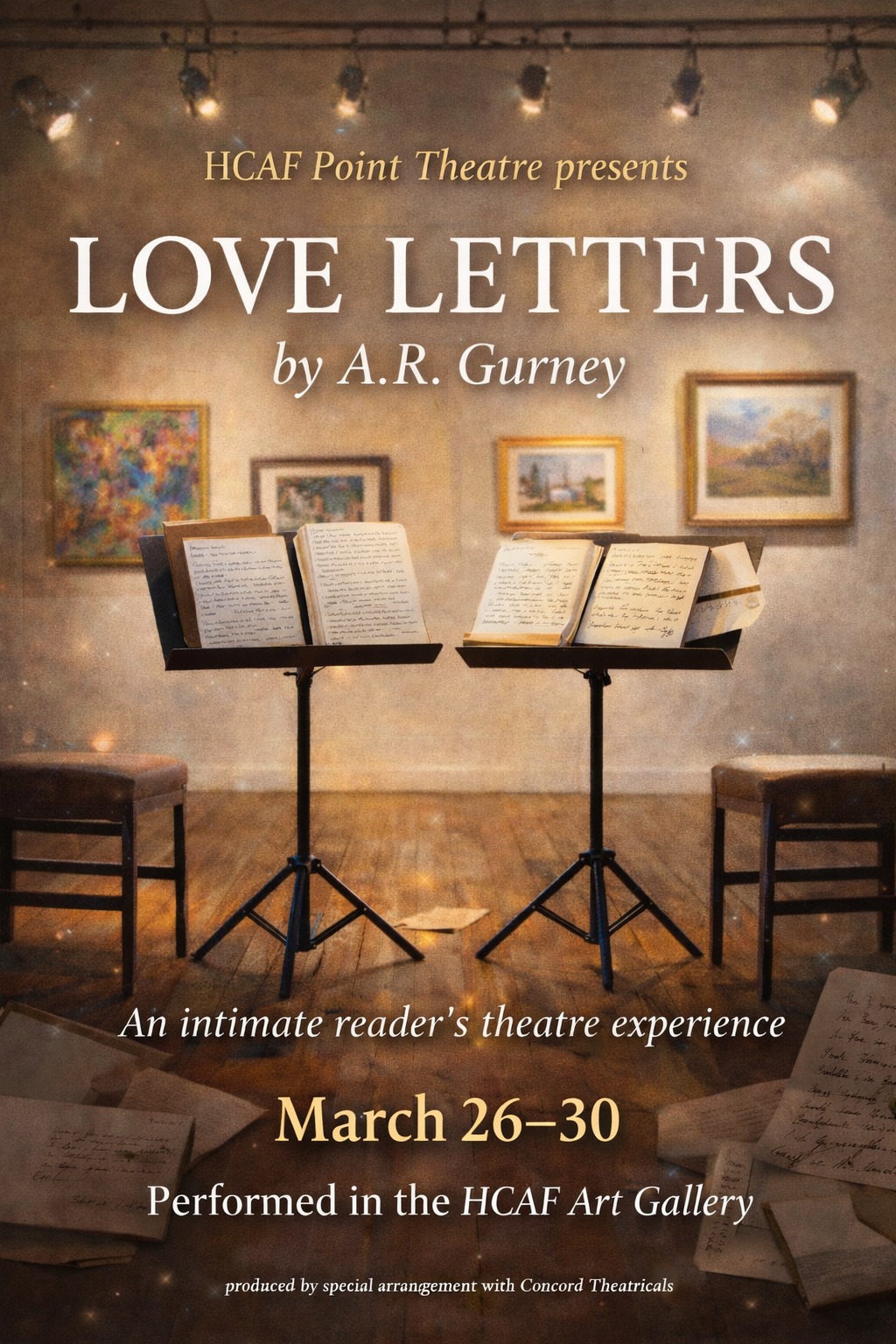 We are thrilled to announce our next production, A.R. Gurney’s Love Letters, coming March 26–30 — performed in the HCAF Art Gallery.