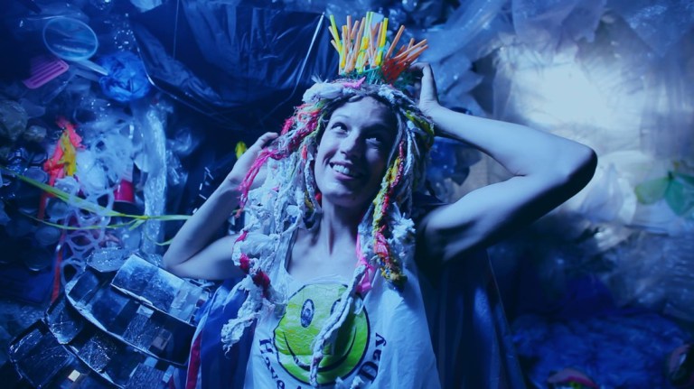 Polly Mermaid (Indigo Rael) lives at the bottom of the ocean with her collection of plastic. Which ocean in which universe is at issue, because while Polly's realm receives all the plastic trash we produce. Human beings themselves haven’t found it until an astrophysicist named Deborah Déguderè(pronounced "Dogooder"), played by Katy Taylor, stumbles into it through a wormhole of her own creation.