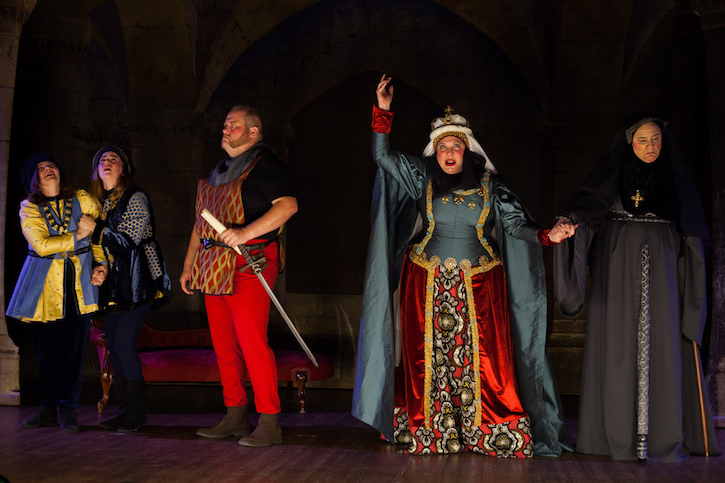 Brock England offers strongly distinctive characters both as the infirm, imprisoned King Henry VI and as Richard's eventual nemesis the Earl of Richmond, distinctions assisted by the spectacular period costumes of Master of Costume Jenny McNee. England’s movement and gestures were especially supportive of the emotional tonality of his scenes. England is a committed actor of the whole being, not from the neck up.