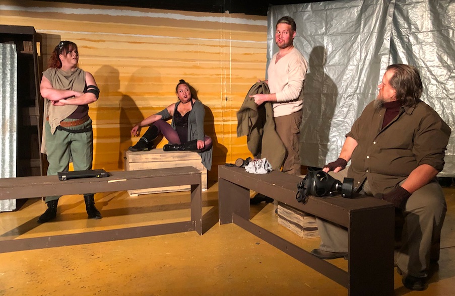 Gable is the thoughtful foil to the hot headed and insistent Mother Militia. The script gives no background for their relationship other than the hint that he’s the only one ready to challenge her arbitrary leadership. Female techie Darby (Grace Lambertson) leads the search through most of Act I for the map, a McGuffin in Hitchcockian style. Supporting members are the dutiful, stoic Vaughn (Jenn Harris), cynic Blair (Matthew Legare) and lost-boy Jimenez (Venny Mortimer). Song and Clyde give them distinctive characters and voices but almost no background. The opposing gang is even less differentiated.