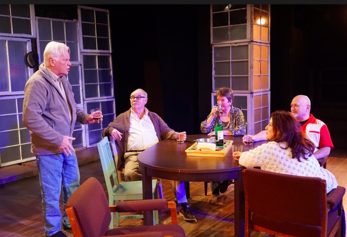 The play begins with a monologue by Ann, played by Janelle Buchanan, who remembers playing Peter Pan in a local production when she was preadolescent. The speech is embedded in a lengthy hospital scene of the death of the patriarch, played by Tom Swift. The septuagenarian siblings hold a lengthy wake at home. These old children exchange divergent opinions on the soul, church, and the afterlife, throwing in 90's political opinions for good measure. None of the opinions mesh, leaving us without a guiding cosmology.