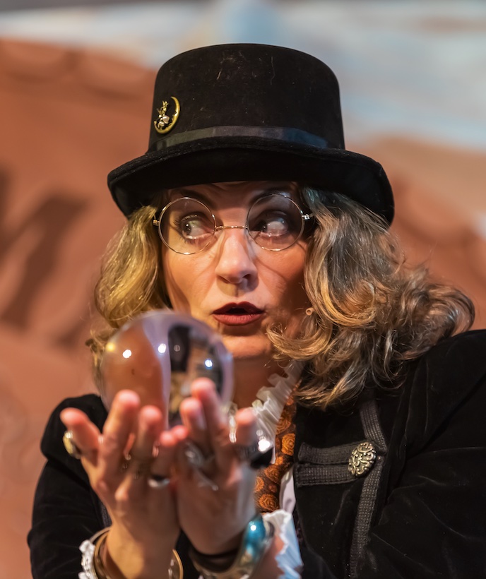 Others are quite unlike the film. Lara Wright as Professor Marvel/the Wizard is mischievous and lively where Frank Morgan was deceptive but kindly. And Taylor James sweeps into roles unrelated in the film, Aunt Em and Glenda the Good, convincingly portraying the opposites of worried farmwife and benevolent, be-bubbled angel of the Munchkins. The young dancer/performers appearing as Munchkins have none of the grotesquerie of those in the film. Young TJ Cate as their mayor is a particularly sunny presence.