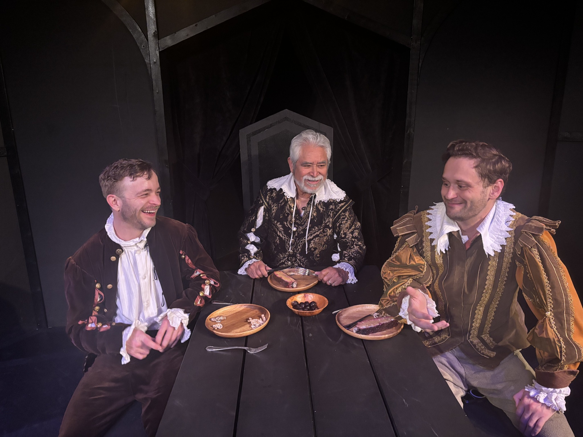 Playwright Silverman crafts a meticulously joined plot involving three male characters and one other much younger woman. Rupert Reyes is Sir Arthur, lord of the manor, unquestioning owner of everything and everyone. Reyes, one of the gentlest and kindest actors in Austin, shows us a rural aristocrat unaware of his privileges, a widower devoted to the memory of his talented assertive wife and worried that his son Cuddy (Steve Guntli) is far more interested in Morris dancing than in producing an heir. Sir Arthur rescued Frank Thorney (John Edward Cook) from a life of horrendous hunger and deprivation, probably on a whim. Frank, about the same age as Cuddy, has lived in the castle for five years. He's convinced he is destined to have greatness thrust upon him, and he is driven by his ambition for wealth, ease, and safety.
