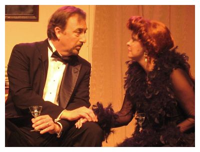 Self-important huffing-and-puffing dragoon officer Count Carl-Magnus Malcolm is Desirée’s current lover. David Sray gives us a comic, striding portrait of self-assertion, as a man who owns his horse, his mistress, and his wife, and perhaps values them in that order. His discovery of Frederik in Desirée’s apartment is a scene of high comedy. Carl-Magnus demands satisfaction – a duel – while Frederik, wrapped in the Count’s own bathrobe, without a shadow of conscience resolutely lies his way out of confrontation.