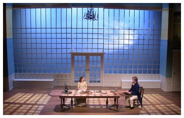 Tom Stoppard's Arcadia shines with wit and whimsicality. The dialogues between these characters are so quick and clever that sometimes you perch on the edge of your seat, breathlessly holding back your laughter so that you won't miss a single syllable. This is wit writ deep -- in the characters, their contrasting views of the world and their social positions; in dissembling, feuding and courtship; and in the juxtaposition and then the overlapping within the same genteel English manor house of events that occurred in 1809 and modern- day investigations of those events by archeologists and academics. The message is that truth is unknowable and that life occurs only in the flicker and illumination of the present moment.