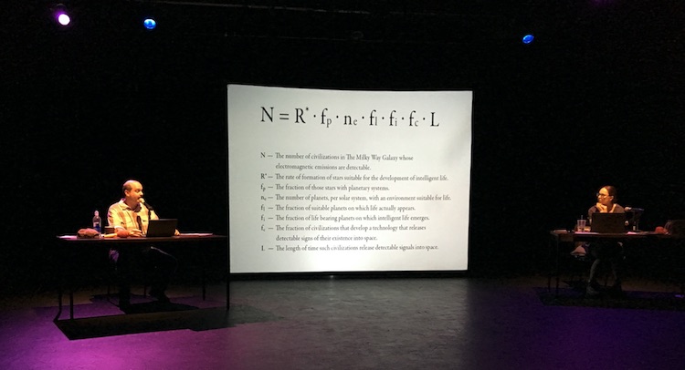 How likely is it that there will be anyone out there in the great unknown to receive our messages? Rational definitions suggest near impossibility. Rebecca sifted out for us the percentages of matter existing in space and defined the relevant portions as low as 2 percent; Stephen gave us the formula embodying the likelihood of any message being received, given distances, durations and the hypothetical survival times of intelligent life, including that on our own planet.