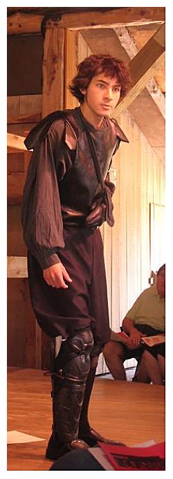This production did not seem overly long. The director and the 14-member student cast kept the action percolating promptly along. For the most part, they did not thunder through the piece. I surmise that Loehlin and staff had trimmed the text judiciously, preserving all the best known passes of this remarkable history.